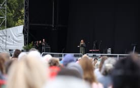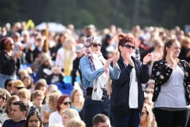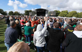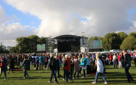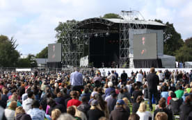 People starting to pack out the area near the screens and stage in Christchurch. RNZ / Israa Emhail