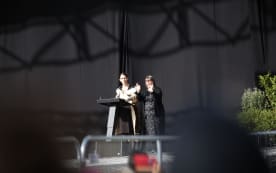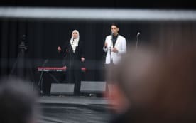 Hollie and Teeks perform at the national remembrance service in Christchurch. RNZ / Claire Eastham-Farrelly