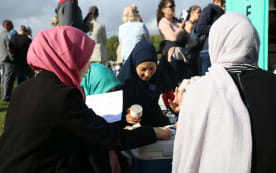 A group of girls from the Who is Hussain group are handing out free cups of coffee and water. RNZ / Israa Emhail