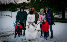 The Hain family of Waikura Station making a pretty impressive snowman.