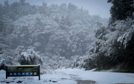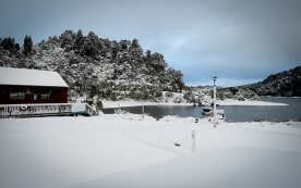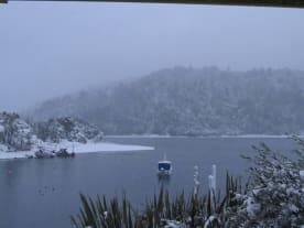 "Stunning morning with more snow over night. Great to wake up with the power still on", Waikaremoana Holiday Park. Photo: Waikaremoana Holiday Park