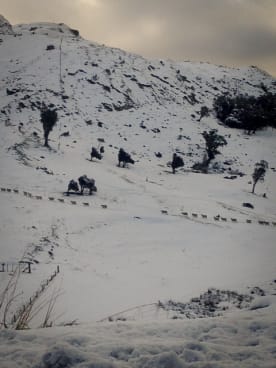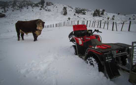 "Snow drifting" past big bully boy at Tahora Station, Wharekopae (inland Gisborne). Photo: Nicholas Barclay