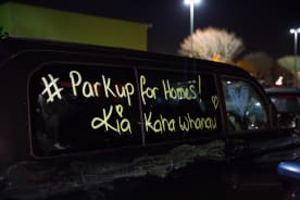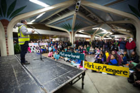 #Parkupforhomes organiser Justin Latif addresses the crowd.