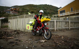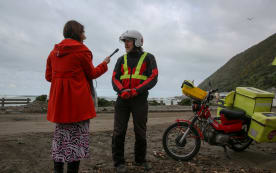 Postie Gerard Dobson took to the footpath on his motorbike to make sure the mail got through. Photo: RNZ / Alexander Robertson