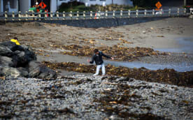 Owhiro Bay resident, Ewan Pohe cleaning up. Photo: RNZ / Alexander Robertson