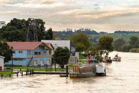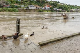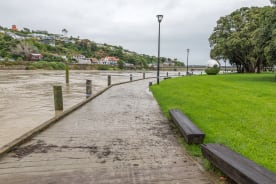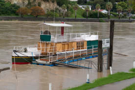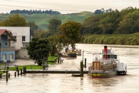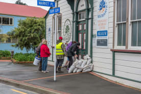 About 200 homes are being evacuated in Whanganui, with security personnel patrolling outside businesses to stop looting. Photos: RNZ / Mark Brimblecombe