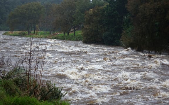 Heavy flow in the Waiwhakaiho River, Fitzroy New Plymouth.