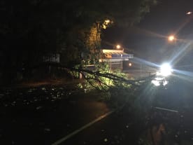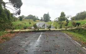 A tree blocks Matapihi Station Road in Tauranga. Photo / Priscilla Borell
