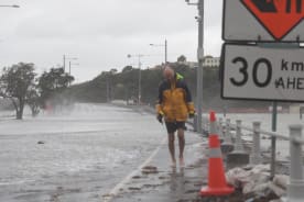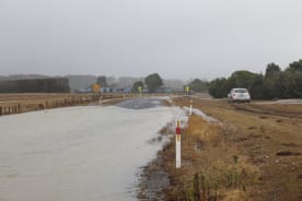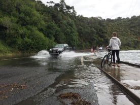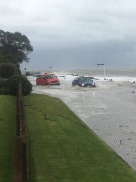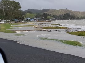 Kawakawa Bay out from Clevedon about 9am on Friday. "Water across the road now and still nearly 2hrs to go before high tide". Photo: Graham Cochrane