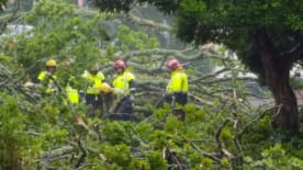 Crews work to free a person trapped in a car in Rotorua when a tree fell on the vehicle. Photo: RNZ / Phil Pennington