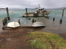 Whangapoua Wharf, north of Whitianga in Coromandel. The king tide is covering the road and has completely covered a private wharf. Photo: Lloyd Whalen