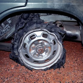 Japanese team Aisol doing a quick wheel change because of a