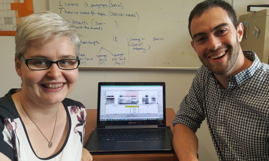 Linguistics researchers Lynn Clark and Daniel Villarreal,.at the University of Canterbury. Photo: RNZ / Alison Ballance
