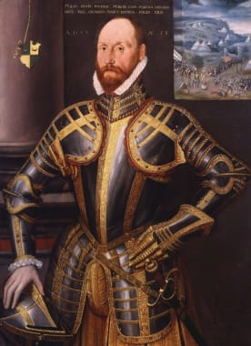 Martin Frobisher by Ketel circa 1577. Frobisher wears a jerkin closed only at the neck over a peascod-bellied doublet.