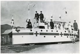 Wakefield Hospital Ship Float. In 1915 there was a monster fund-raising Gala in Nelson to help raise money for the troops during the first World War. Wakefield's float was made to represent a hospital ship called "Maheno". Image: Tasman District Libraries Kete. (CC BY-NC-SA 3.0 NZ)