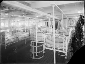 Creator unknown: Beds aboard the World War 1 hospital ship Maheno. Ref: 1/1-002217-G. Alexander Turnbull Library, Wellington, New Zealand. http://natlib.govt.nz/records/23048221
