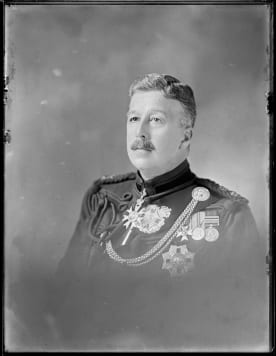 Lord Liverpool wearing dress military uniform with many medals. Sir George Grey Special Collections, Auckland Libraries, 31-WP7399'