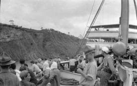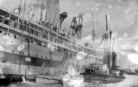 Hospital ship 'Marama' re-coaling. Image: Masterton District Library and Archive.