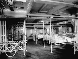 Hospital beds on board the Maheno. Dickie, John, 1869-1942 :Collection of postcards, prints and negatives. Ref: 1/1-002218-G. Alexander Turnbull Library, Wellington, New Zealand. http://natlib.govt.nz/records/23201075