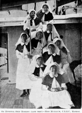 On Hospital Ship Maheno (last trip)—Miss McAllum, C.R.R.C., Matron. Image: New Zealand Electronic Text Collection. (CC BY-SA).