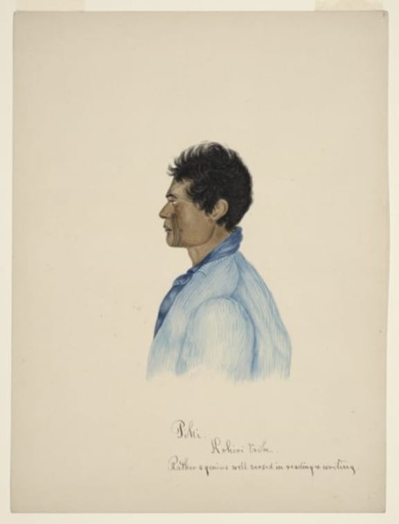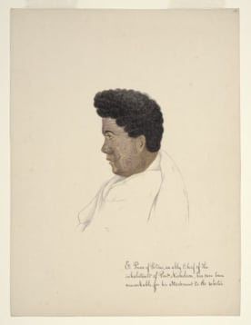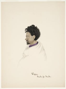 Head and shoulders profile portrait of Maori man, probably of Motueka and a past student of Rev. C.Reay. Coates, Isaac, 1808-1878. [Coates, Isaac] 1808-1878 :Piki. Kohiri tribe. Rather a genius well versed in reading and writing. [1843?]. Ref: A-286-010. Alexander Turnbull Library, Wellington, New Zealand. http://natlib.govt.nz/records/22775518