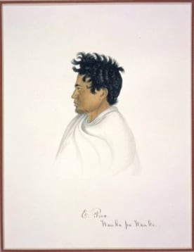 Head and shoulders profile portrait of Honiana te Puni, paramount chief of Wellington district and signatory to the Treaty of Waitangi. Coates, Isaac, 1808-1878. [Coates, Isaac] 1808-1878 :E Puna of Petoni, an ally chief of the inhabitants of Port Nicholson, has ever been remarkable for his attachment to the whites. [1843?]. Ref: A-286-016. Alexander Turnbull Library, Wellington, New Zealand. http://natlib.govt.nz/records/23134701