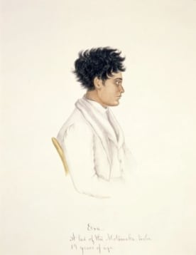 Head and shoulders profile portrait of an unidentified Maori youth, attending Charles Reay's school for Maori students, which opened in Nelson in April 1843. Coates, Isaac, 1808-1878. [Coates, Isaac] 1808-1878 :A Youth of the Motuwaka tribe studying with the Rev. C. Reay for the Ministry. [1843?]. Ref: A-286-009. Alexander Turnbull Library, Wellington, New Zealand. http://natlib.govt.nz/records/22310781
