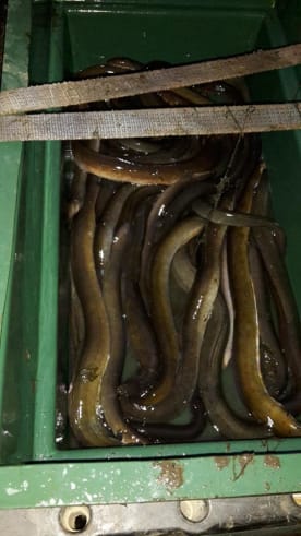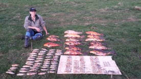 Rachael Abbott proudly displaying the almost-total haul of 172 koi carp.