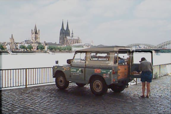 Picnic spot (using the Series 2A's fold-down picnic table) on the banks of the Rhine, with Cologne Cathedral as backdrop