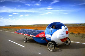 Modeled on a popular Japanese cartoon character this vehicle and zany team achieved their purpose admirably, capturing hearts and minds of the young and young-of-heart, also providing inspiration for a subsequent giant solar platypus. Photo- Copyright: Rehia Photo Library