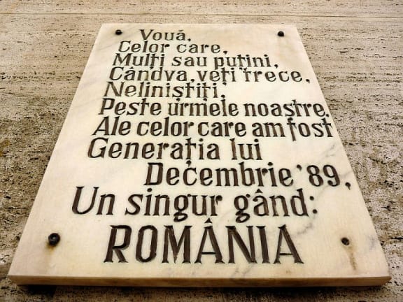 A memorial plaque on the National Opera Building paying tribute to the few and the many revolutionaries who stood in opposition to Ceausecu's moribund regime, with one thought in their mind: a new and free Romania.