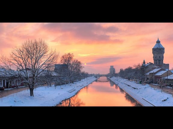 The Bega River circles Timisoara, and sunsets in the winter time were often spectacular.