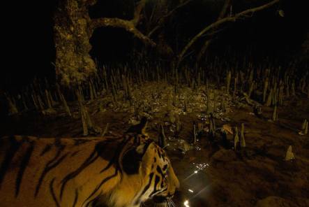 Royal Bengal tiger photographed by Tim Laman in the Sundarbans mangrove forest, Bangladesh, for National Geographic.