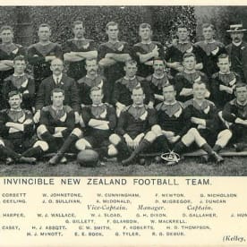 This card was produced to commemorate the 1905 ‘Originals’ ruby tour. A later world tour by the All Blacks in 1924-1925 would earn them the title of ‘Invincibles’. From the collection of Leo Haks