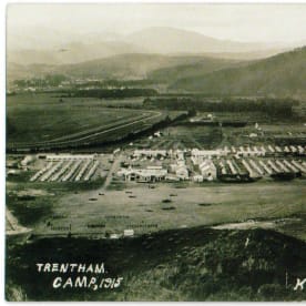 Trentham Camp was established in 1914 to train army personnel in preparation for World War I. As the war dragged on, the camp became overcrowded and by 1916 it shared duties with a larger camp at Featherston. From the collection of Leo Haks