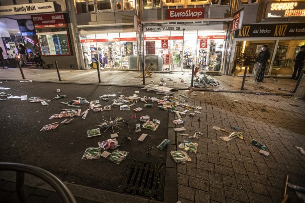 Objects lie in front of a shop looted in Stuttgart after a late-night rampage. Photo: DPA/AFP