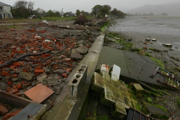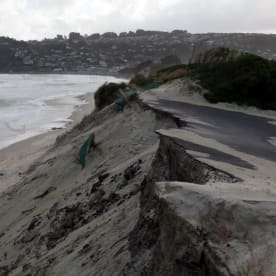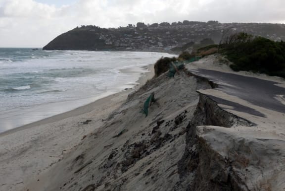 South Dunedin has been battling the sea since the 1800s. At Middle Beach, near St Clair, coastal defences have crumbled into the sea, along with parking areas. A row of piles in the distance is all that is left of a groyne built in 1919.