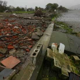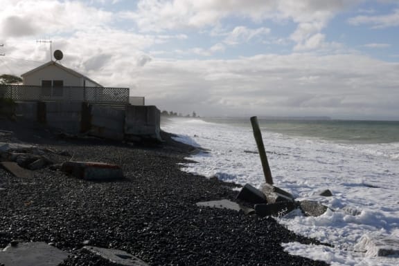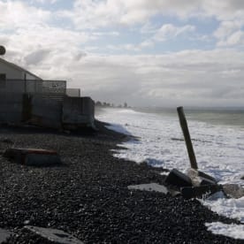 One of the areas of areas most vulnerable to coastal hazards is the Cape Kidnappers coast, east of Napier. At Haumoana the sea is picking off baches one by one, leaving the beach strewn with the rubble of failed defences.