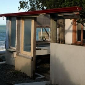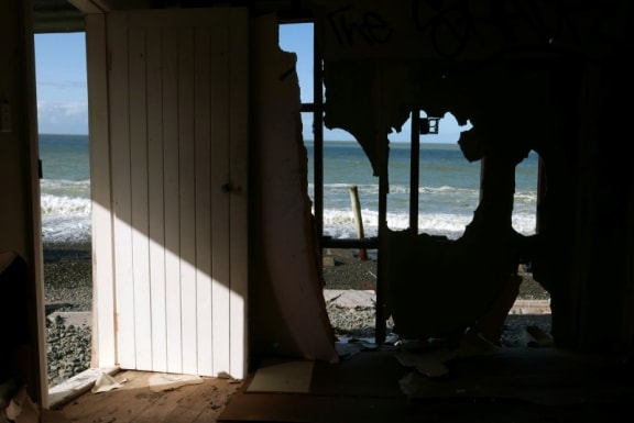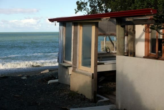 The lucky horseshoe on the windowsill of this Haumoana bach couldn't ward off the intruding ocean.