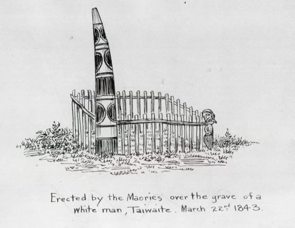 Drawing by John Wallis Barnicoat, Alexander Turnbull Library, Wellington, New Zealand, A-173-034