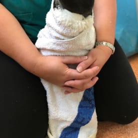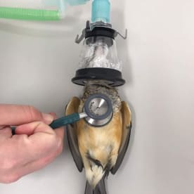 A kingfisher is sedated for x-ray. Photo: Dr. Lisa Argilla.