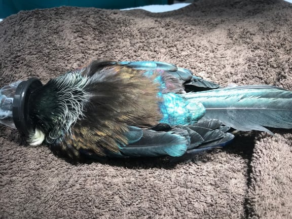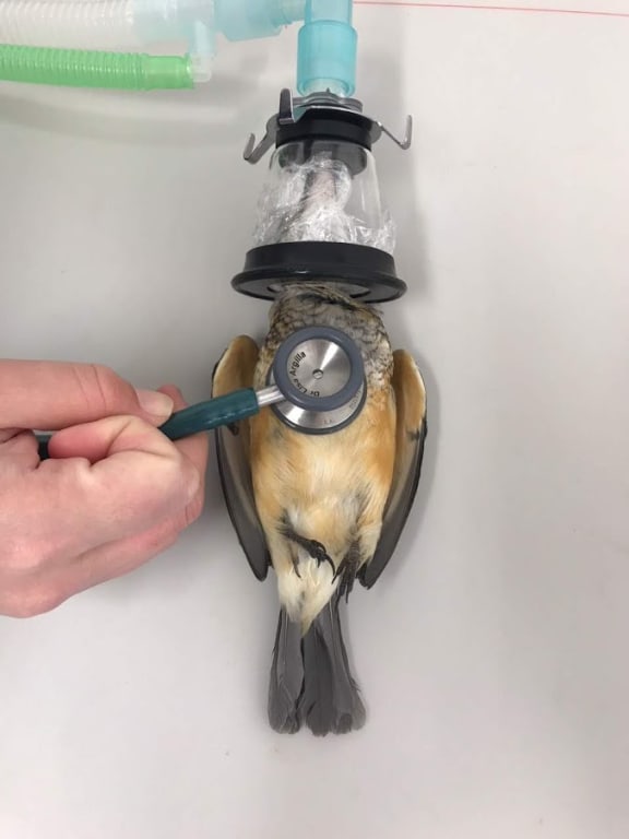 A tui is sedated prior to being x-rayed. The Otago Community Trust donated a state-of-the-art digital x-ray machine to assist with our operations. Photo: Dr. Lisa Argilla.