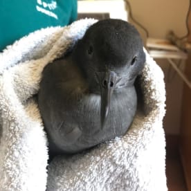 A sooty shearwater brought in from the Dunedin city centre, where it had become grounded.