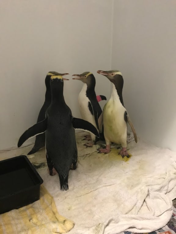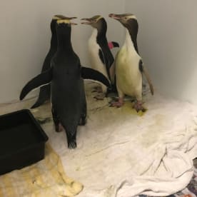 Yellow-eyed penguins compare notes on their stays at the Wildlife Hospital Dunedin. More than 70 of these endangered penguins have been treated in Hospital in 6 months. Photo: Dr. Lisa Argilla.