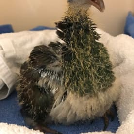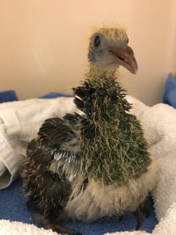A juvenile kereru, or native NZ pigeon, sparked a lively debate on the Wildlife Hospital's Facebook page - cute or ugly? Kereru are the second most common species treated at the Hospital in 2018. Photo: Dr. Lisa Argilla.