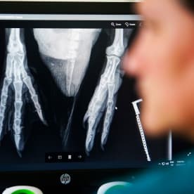 Dr. Lisa Argilla analyses a yellow-eyed penguin x-ray. Photo: Murdo McLeod