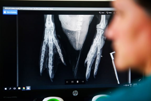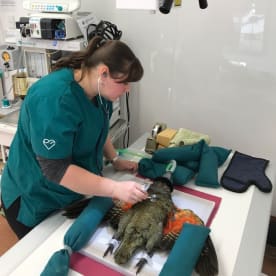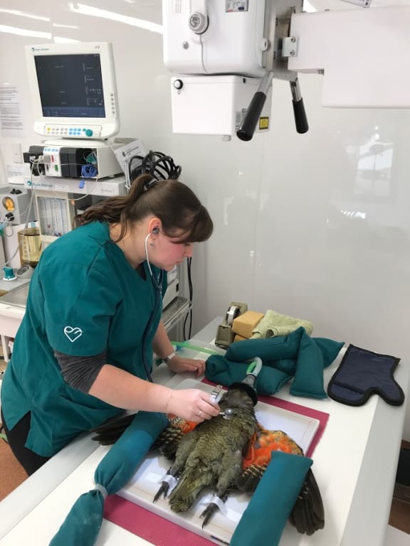 Senior Wildlife Vet Nurse Angelina Martelli x-rays a kea at the Wildlife Hospital Dunedin. Photo: Dr. Lisa Argilla.
