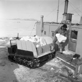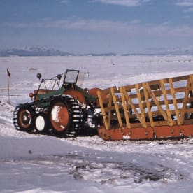 One of the Ferguson tractors and sledges used in transporting the Auroral Radar to Arrival Heights.