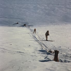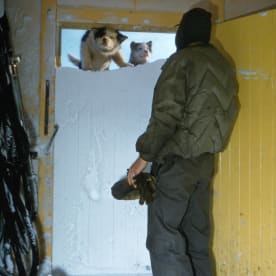 15 After an early spring blizzard the front door is opened to a build-up of snow and two curious pups. (Colin Bailey, 1960)