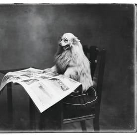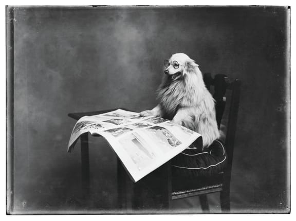 Dog reading newspaper, F N Jones. (Nelson Provincial Museum)